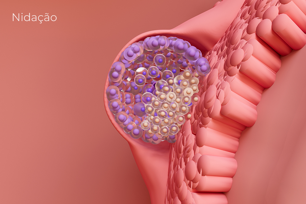 Esse evento também é chamado de nidação ou fixação embrionária. Consiste no momento em que o embrião adere ao endométrio, marcando o início de uma gestação. Quando isso acontece, as células embrionárias começam a produzir gonadotrofina coriônica humana (hCG), conhecida como o hormônio da gravidez. Assim, com a realização de testes de urina ou sangue, é possível identificar a concentração do hCG e descobrir que a mulher está grávida.